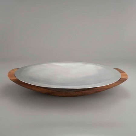 - Crafted from signature Nambe Alloy and Acacia-wood