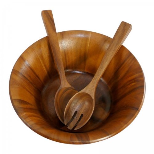 This naturally elegant Acacia Grand Flute Serving Bowl with Servers by Enrico makes a great serving centerpiece for salads or a variety of other delicacies. This wooden salad bowl features bold curves, warm golden brown hues, and expressive natural grain patterns. Acacia wood is a fast-growing and eco-friendly material, making this wooden dish a fine addition to your gourmet kitchen. Acacia salad servers included. Food safe lacquer finish; hand wash for best care. Assembly level/degree of difficulty: No Assembly Required.