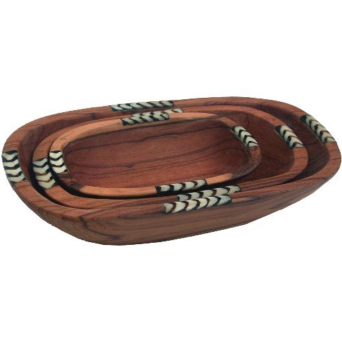 Olive Wood & Bone Inlay Long Nesting Bowls 3-Set (Kenya) - Bamboula #BWLK02 Features